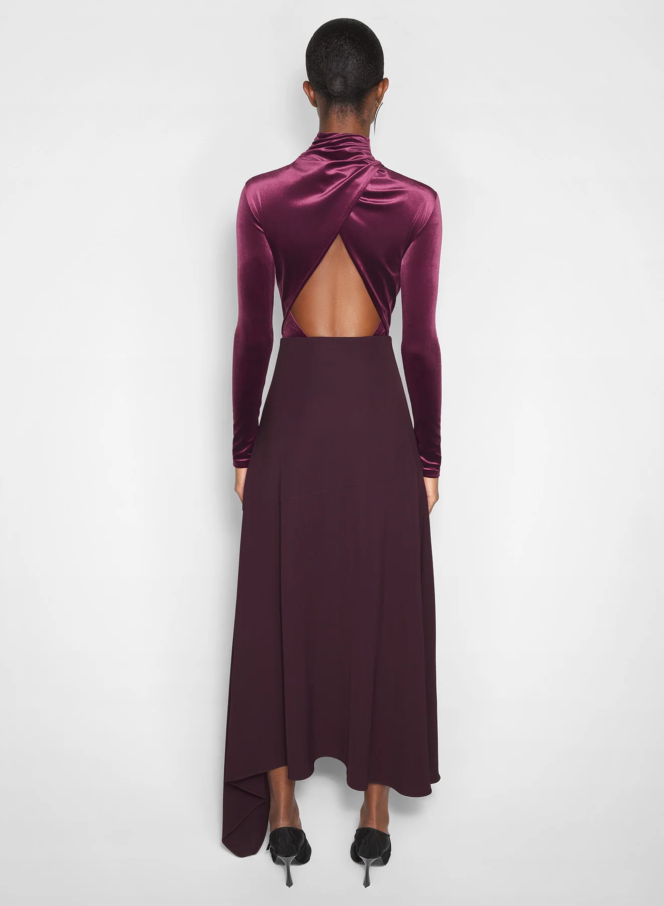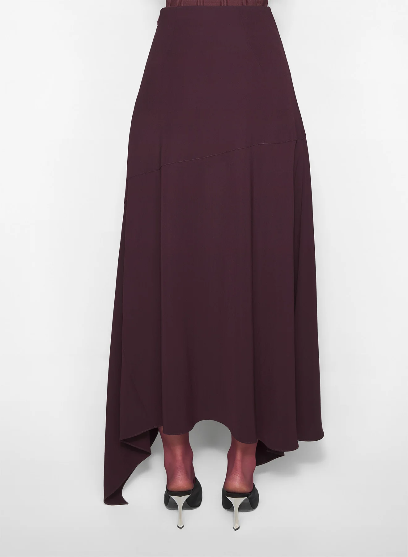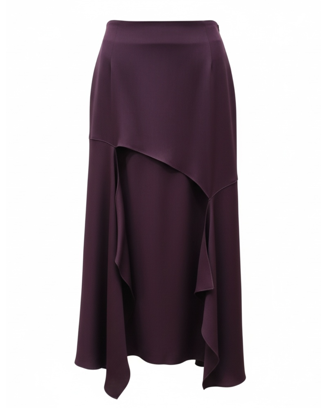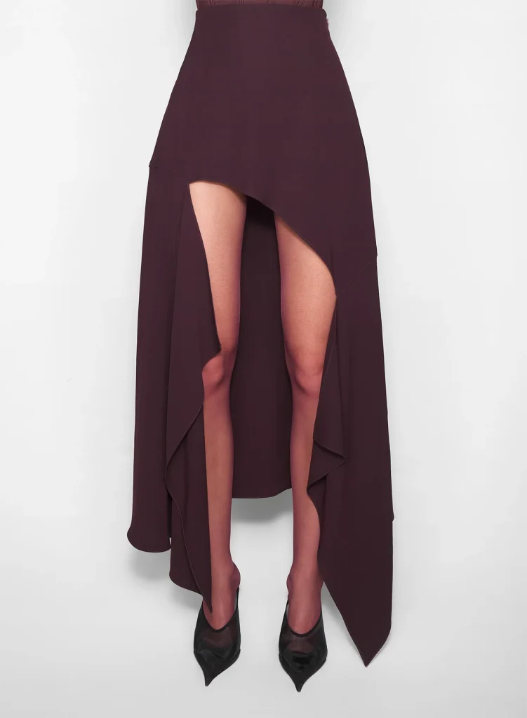 burgundy asymmetric cascading skirt