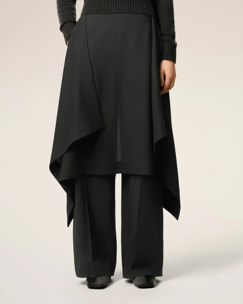 Skirt trousers in lightweight wool twill.