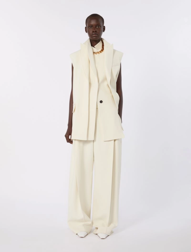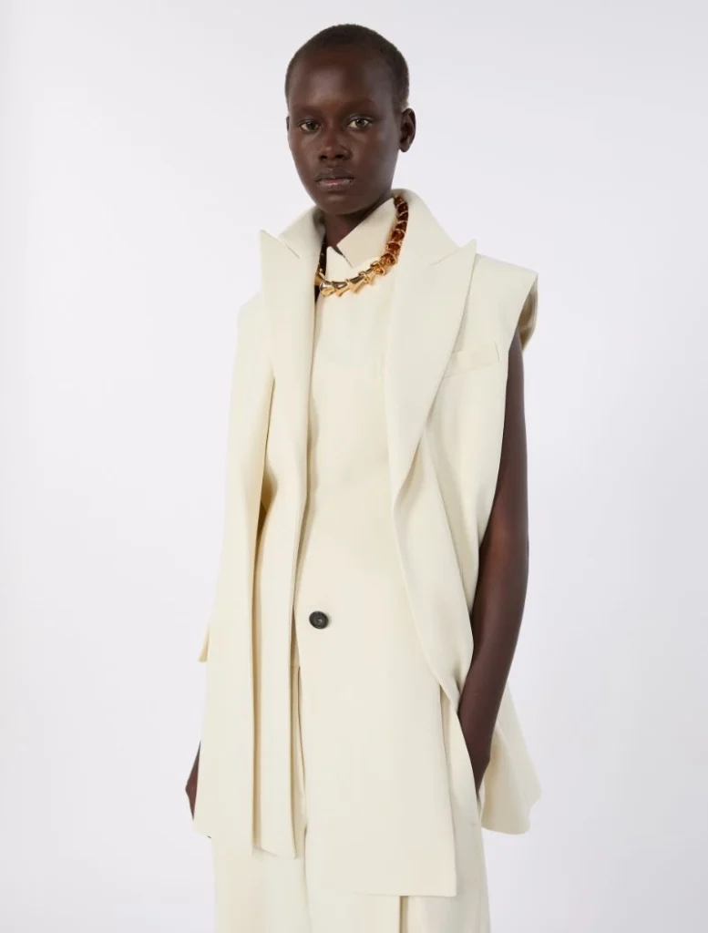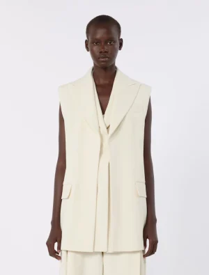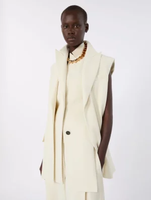 Sleeveless stretch viscose two-piece blazer – ivory