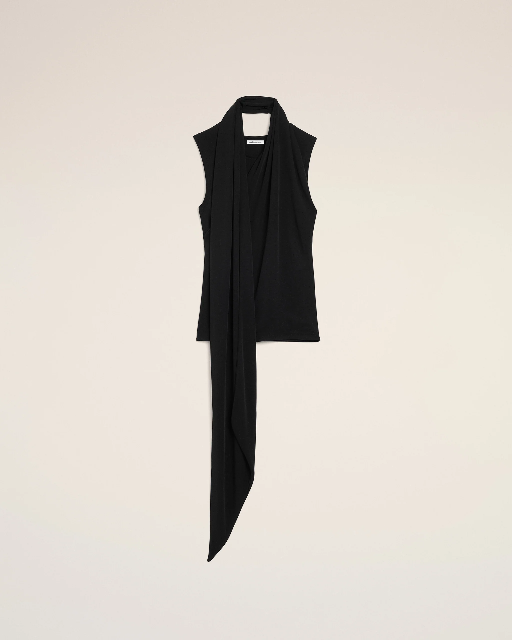 Sleeveless lavaliere top in crepe jersey.