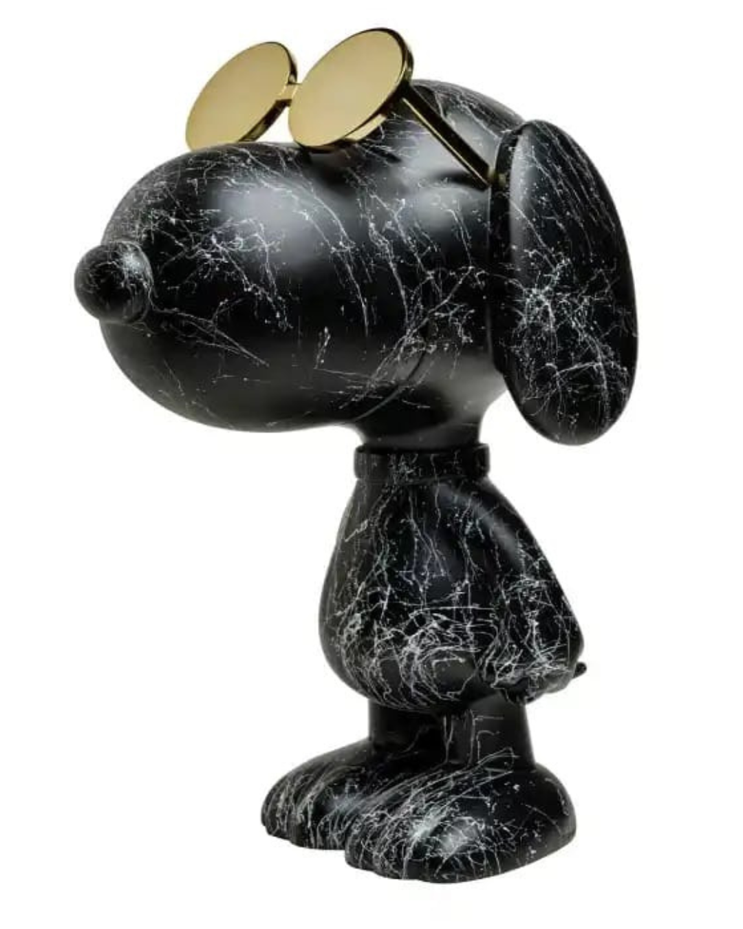 This Snoopy figurine takes center stage in a noir-inspired setting, capturing Snoopy in a moment of playful radiance. The matte black finish lends a touch of mystery, perfectly contrasting with the sunlit details that bring Snoopy’s character to life.