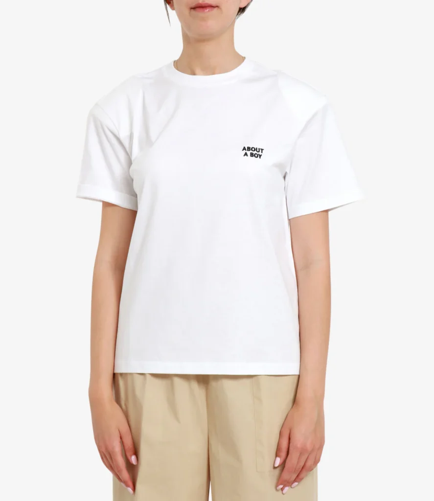 Erika Cavallini Axel T-shirt made of cotton, oversized model with a classic crew neck and short sleeves. “About a boy” embroidered on the left chest.