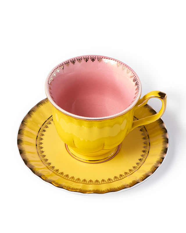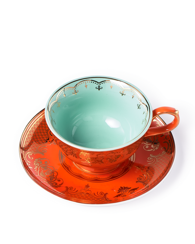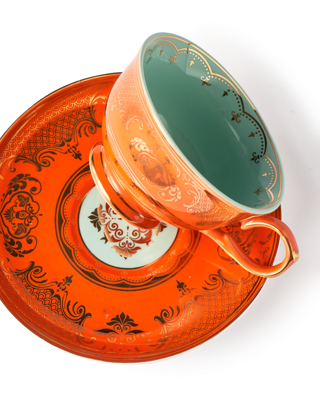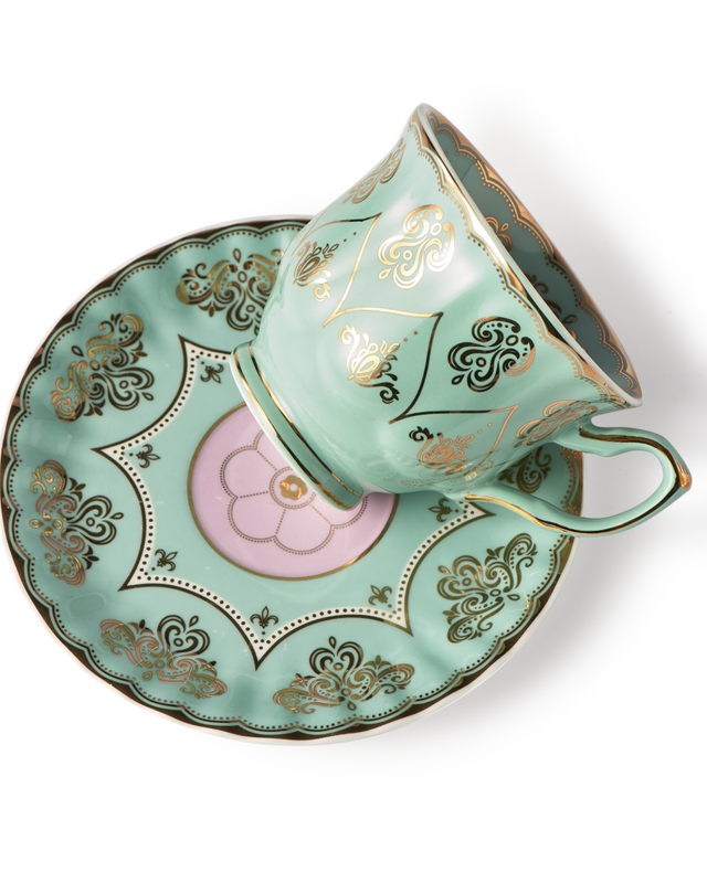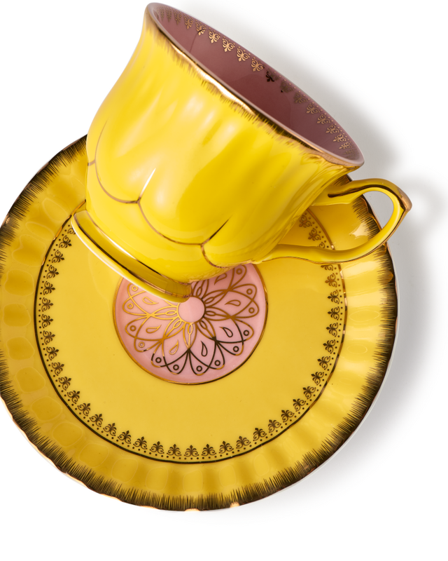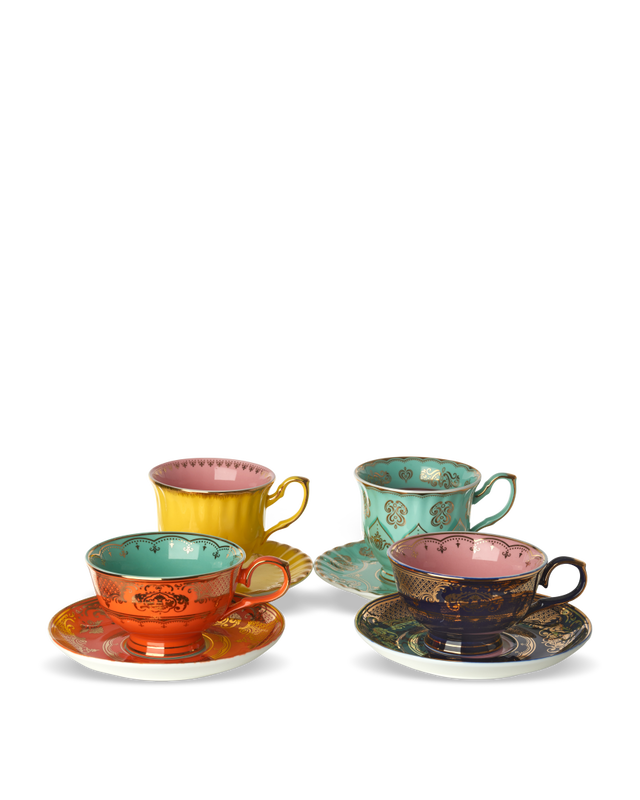 Dimensions: cups 1: L13,2 x W10,2 x H6,2 cm 2:L11,3 x W8,9 x H7,6 cm saucers 1: Ø15,3 x H1,7cm 2: Ø14,4 x 1,3 cm