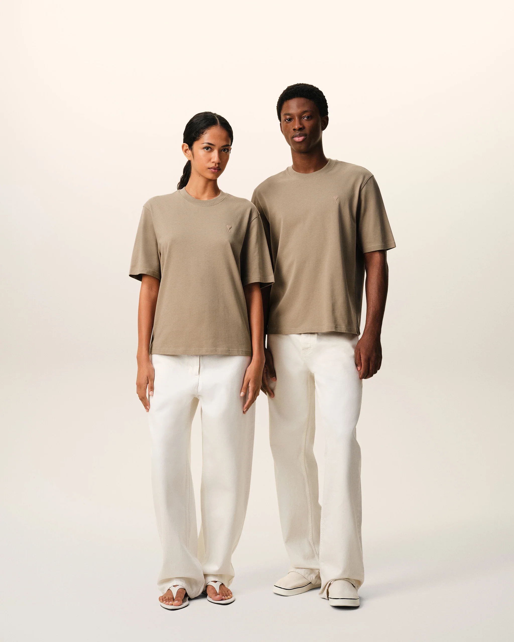 BEIGE COTTON EMBOSSED AMI DE COEUR T-SHIRT