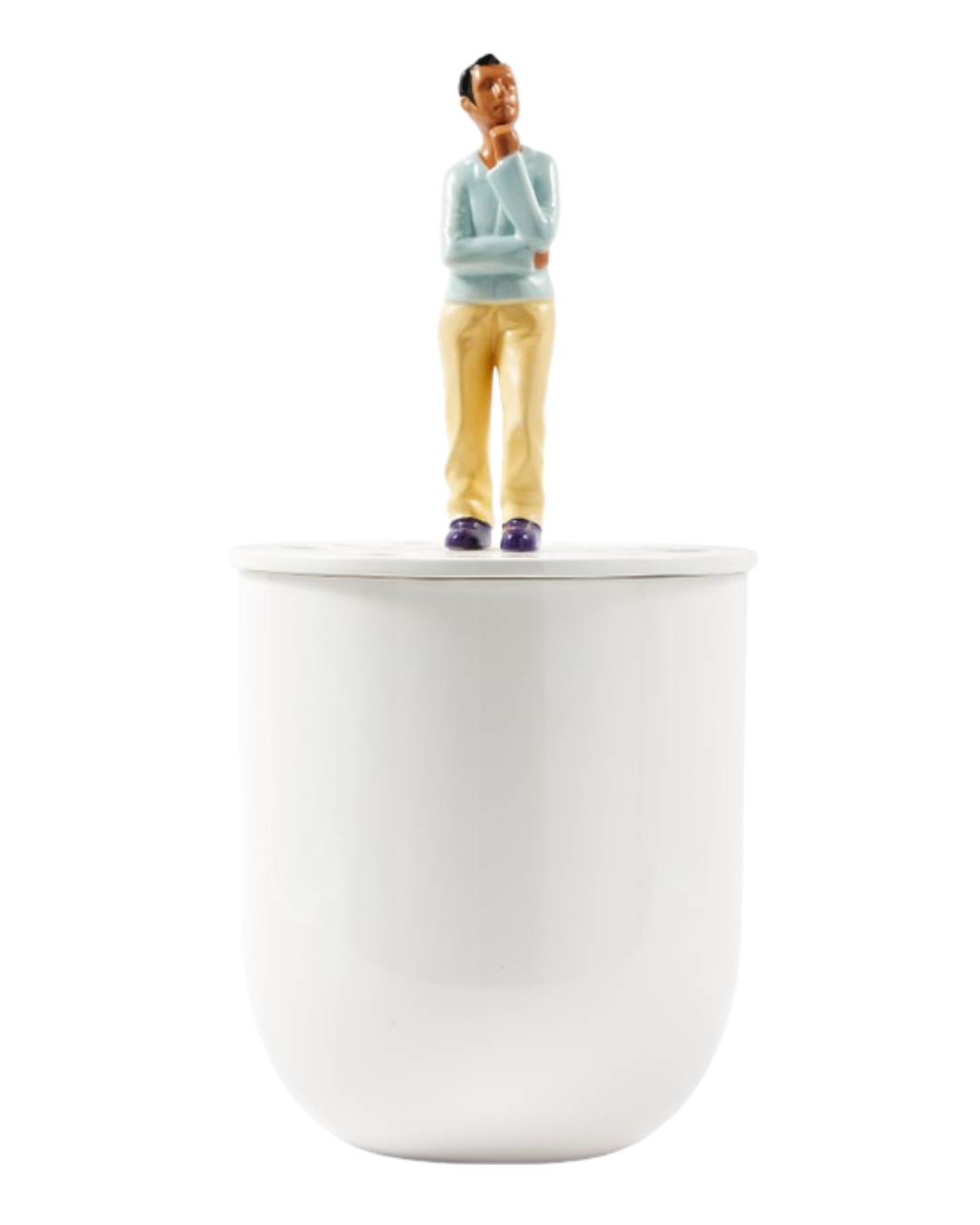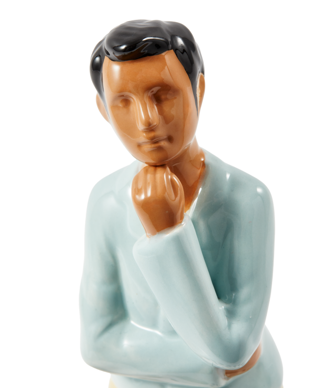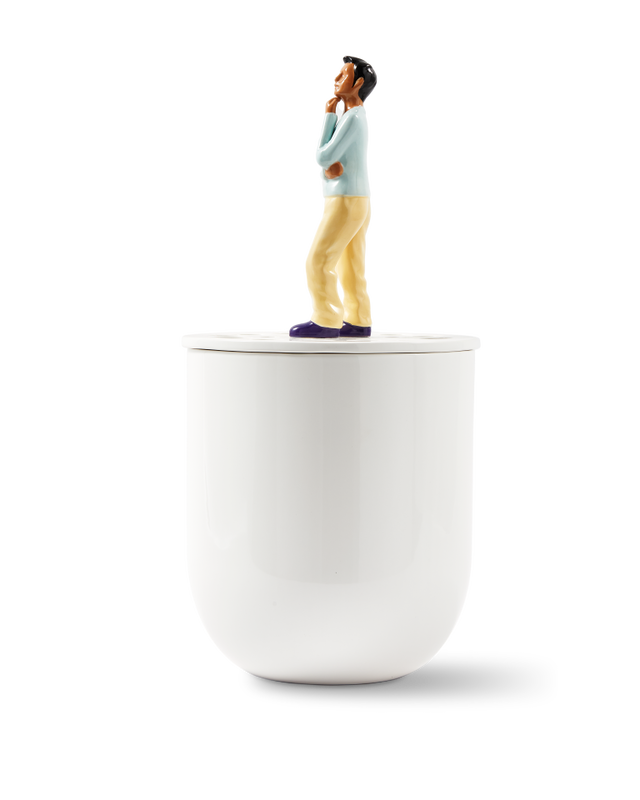 Between your flowers, appears a wondering man. What is he even thinking? Koens & Middelkoop designed the Daydream Vase. A ceramic vessel that shapes your sprigs in a circle, captivating this figure, fully engaged in thoughts.